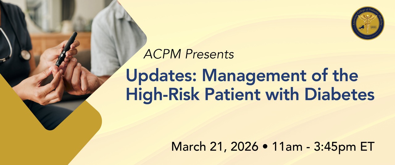 ACPM's upcoming mini conference, Updates in Management of the High-Risk Patient with Diabetes, addresses the complex care of patients with diabetes who are at increased risk for complications.