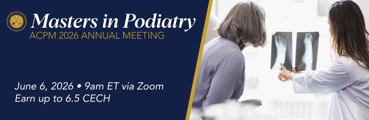 The American College of Podiatric Medicine is approved by the Council on Podiatric Medical Education as a provider of continuing education in podiatric medicine. American College of Podiatric Medicine has approved this activity for a maximum of 6.5 continuing education contact hours.